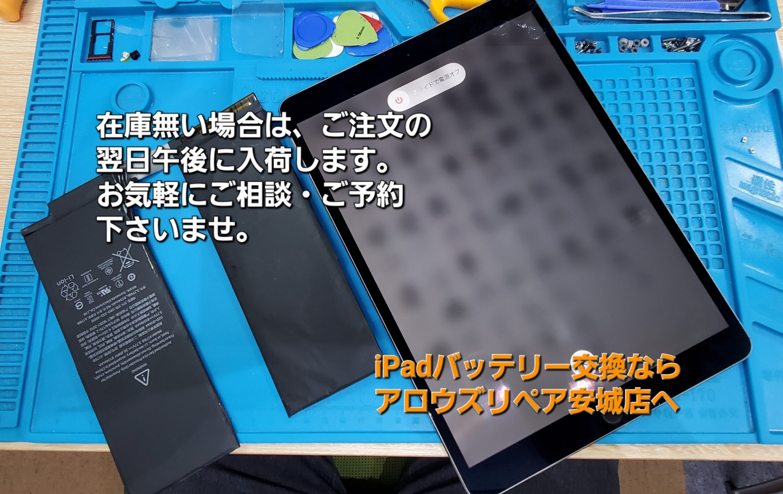 iPad系の修理は、基本的に即日修理対応となりますが、店舗在庫が無い場合は、最短で翌日午後までお待ち頂く場合がございます。