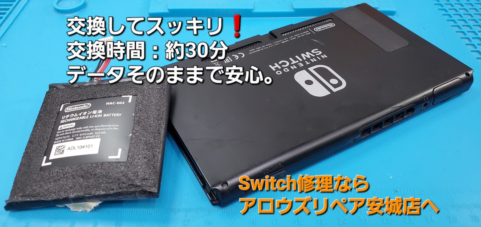今回は、刈谷市よりご来店、任天堂Switch バッテリー交換修理のご紹介です。