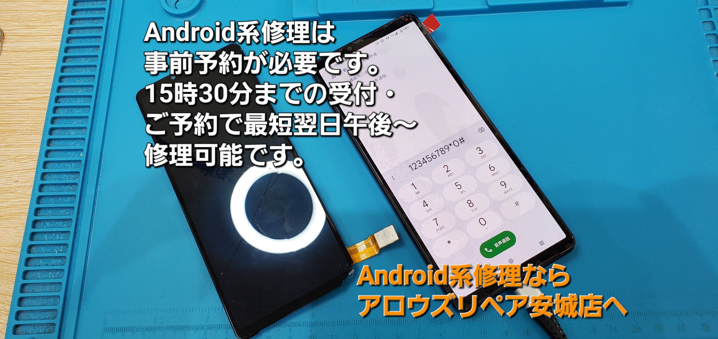 android系の修理は、事前予約・受付が必要です。