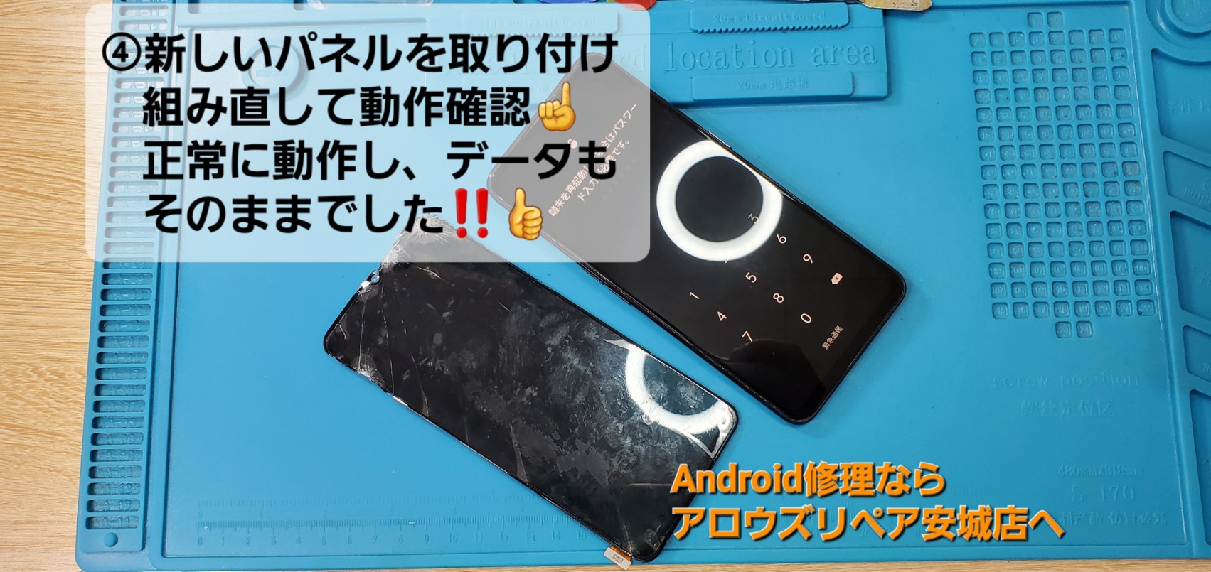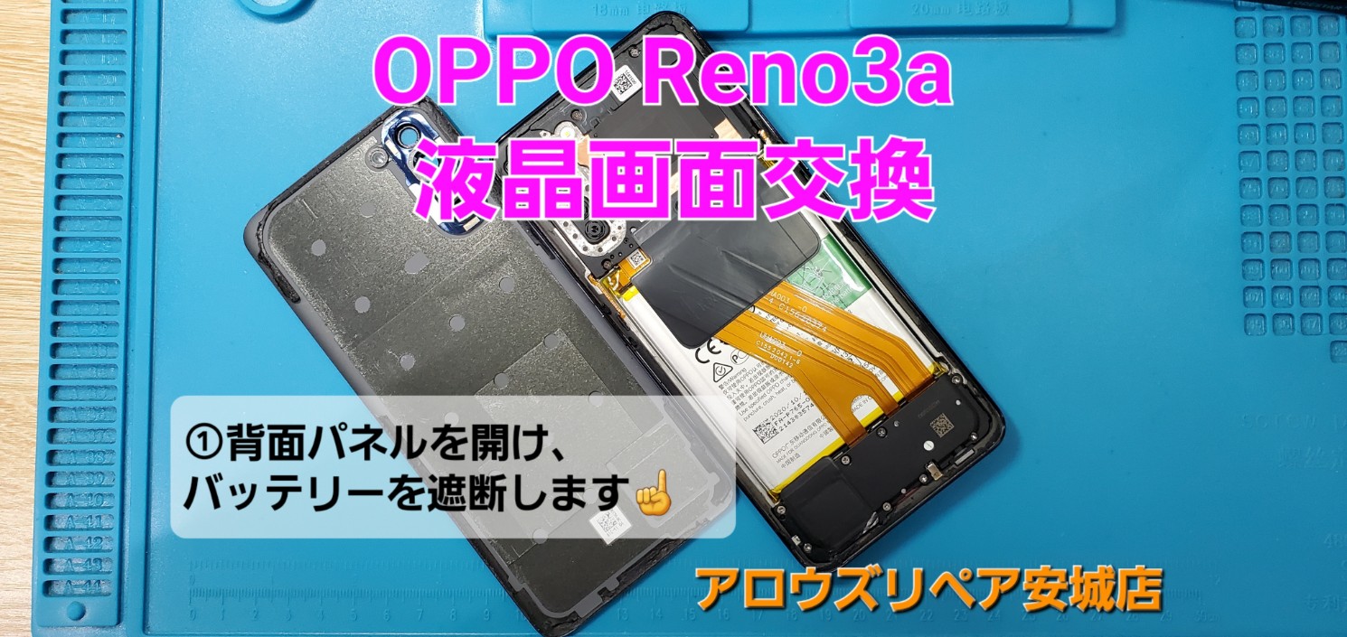 安城市よりご来店、android系OPPO Reno3aフロントパネル割れ交換修理のご紹介。
