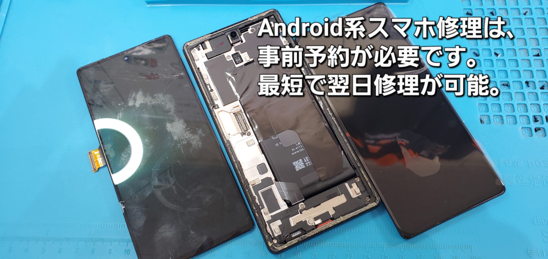 android系関連の修理は、基本的に即日修理対応(基盤修理等はお預かり)となりますが、事前相談・予約が必要です。
