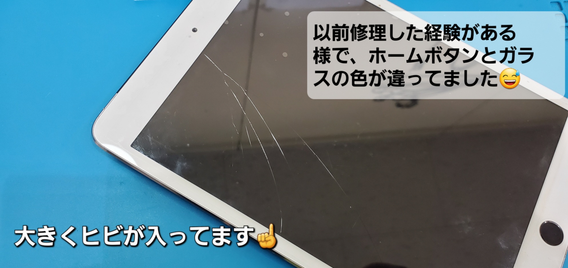 ガラス割れの状態での使用は、指を切ったりケガをする可能性がありますので、早めの交換修理をおすすめしております。