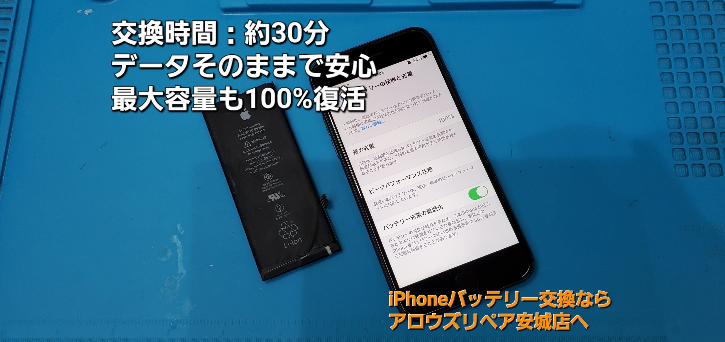 今回は安城市よりご来店、iPhone 8 バッテリー交換修理のご紹介です。