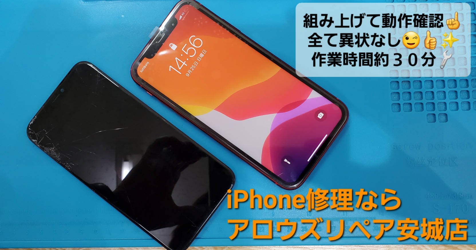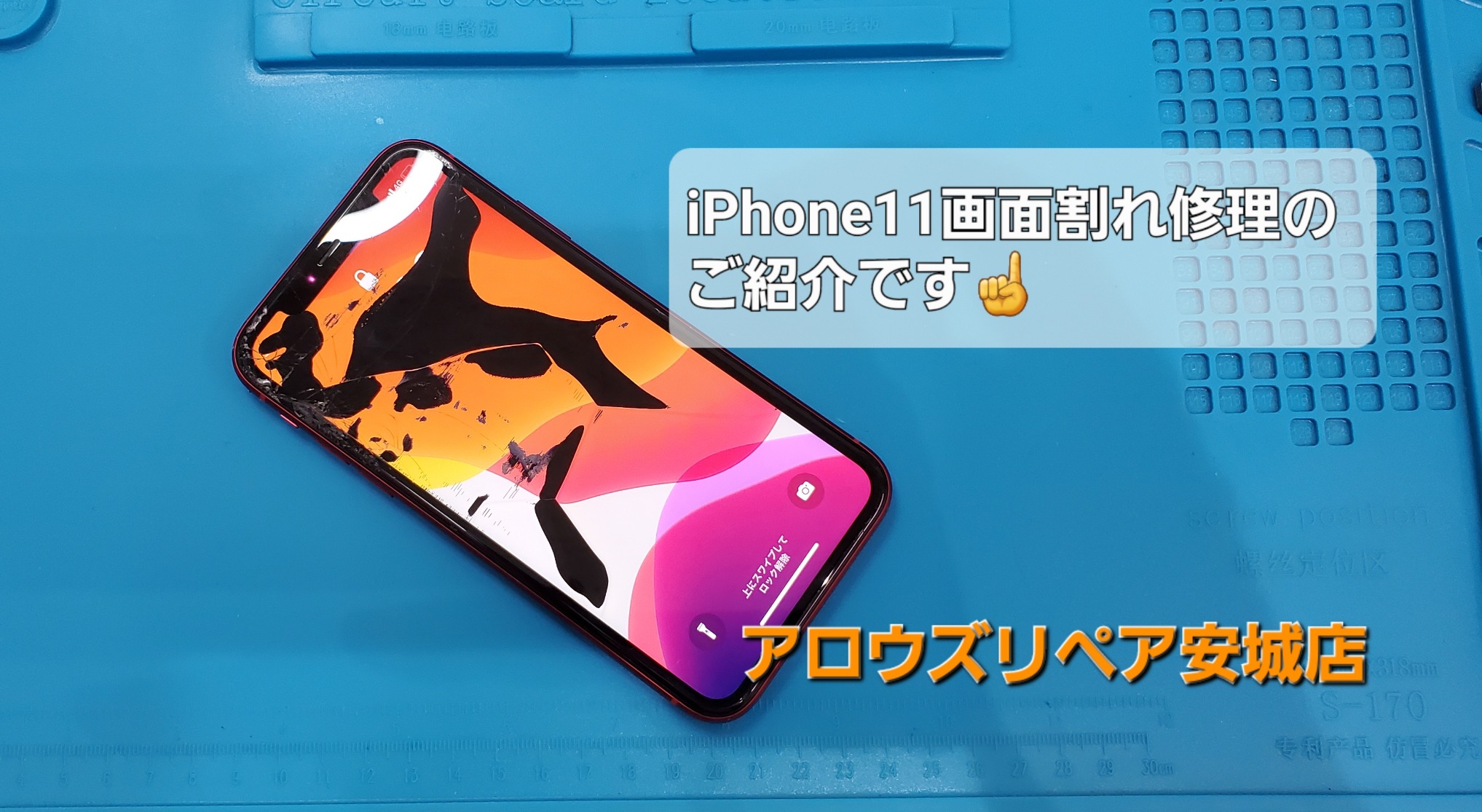 安城市よりご来店、iPhone11液晶パネル割れ交換修理のご紹介。