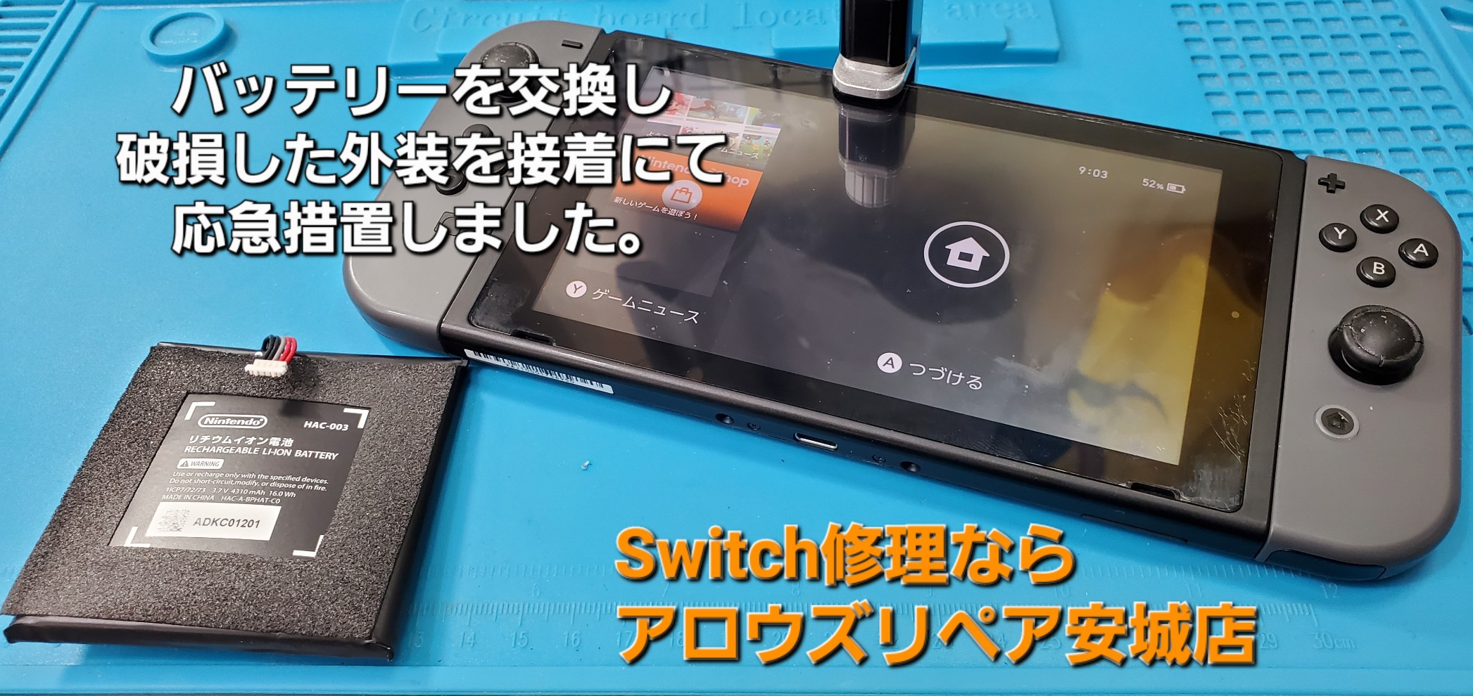 今回は、安城市よりご来店の Nintend Switchバッテリー交換修理のご紹介です。