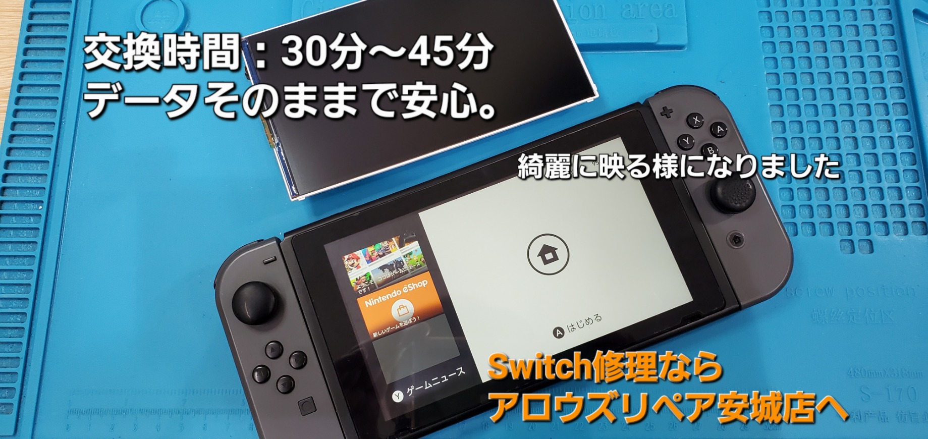 今回のSwitch 液晶パネル交換時間は、約30分~45分で完了致しました。