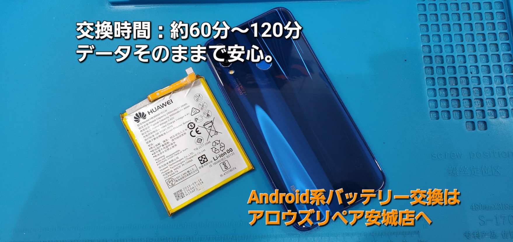 知立市よりご来店、HUAWEI P20 Lite バッテリー交換修理のご紹介。