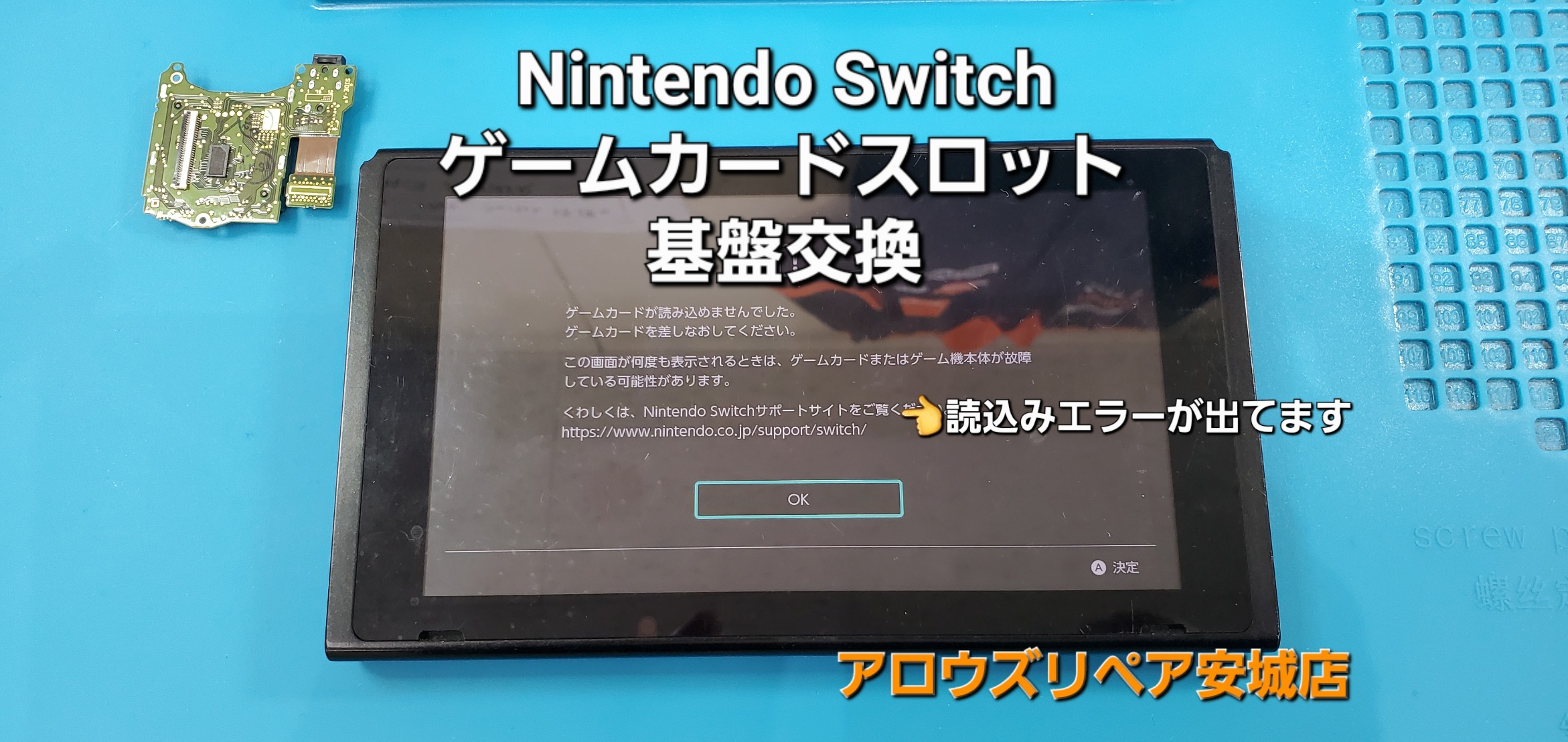 今回は、碧南市よりご来店の任天堂Switch ゲームカードスロット基盤交換修理のご紹介です。