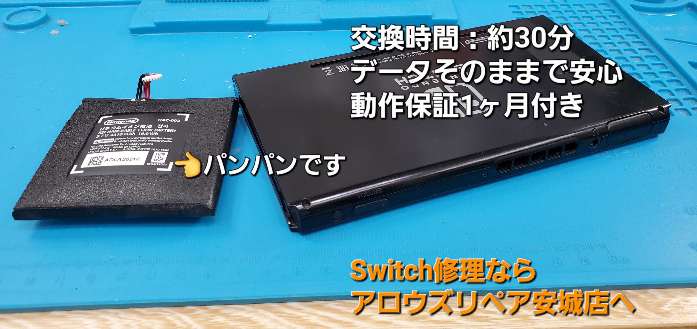 今回のSwitch バッテリー交換時間は、約30分で完了致しました。