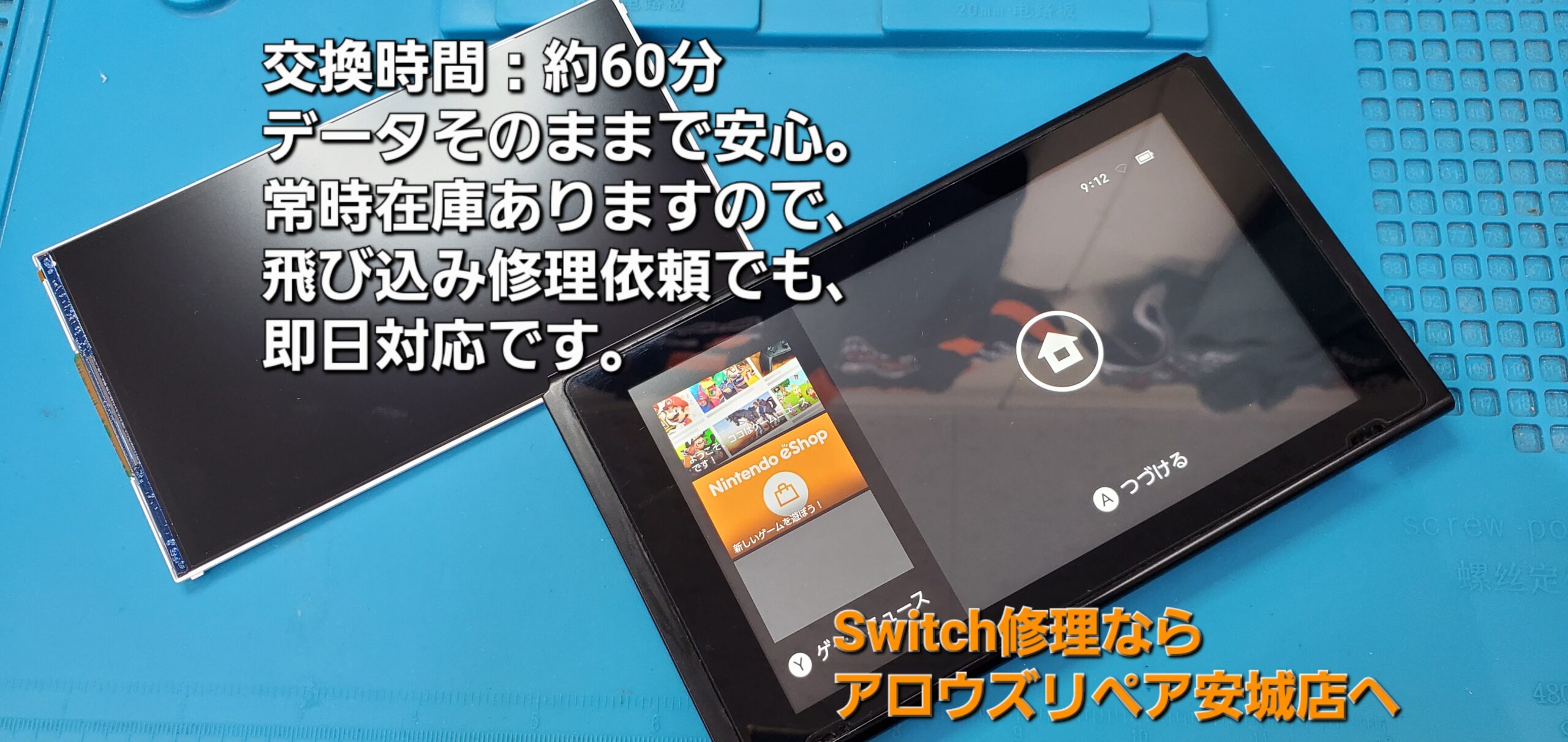 今回は岡崎市よりご来店、任天堂Switch 液晶パネル交換修理のご紹介です。