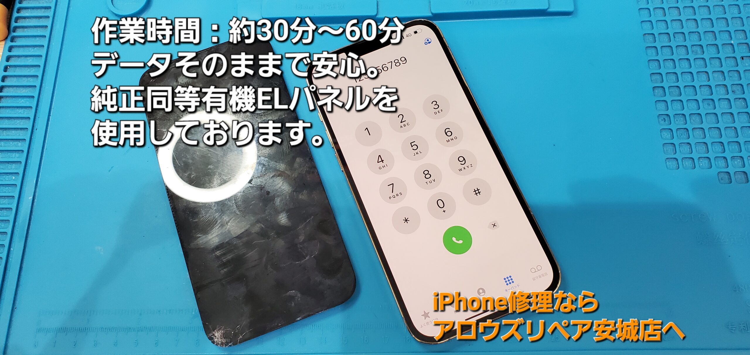 今回は、安城市よりご来店、iPhone 13 Pro Max 有機ELパネル交換修理のご紹介です。