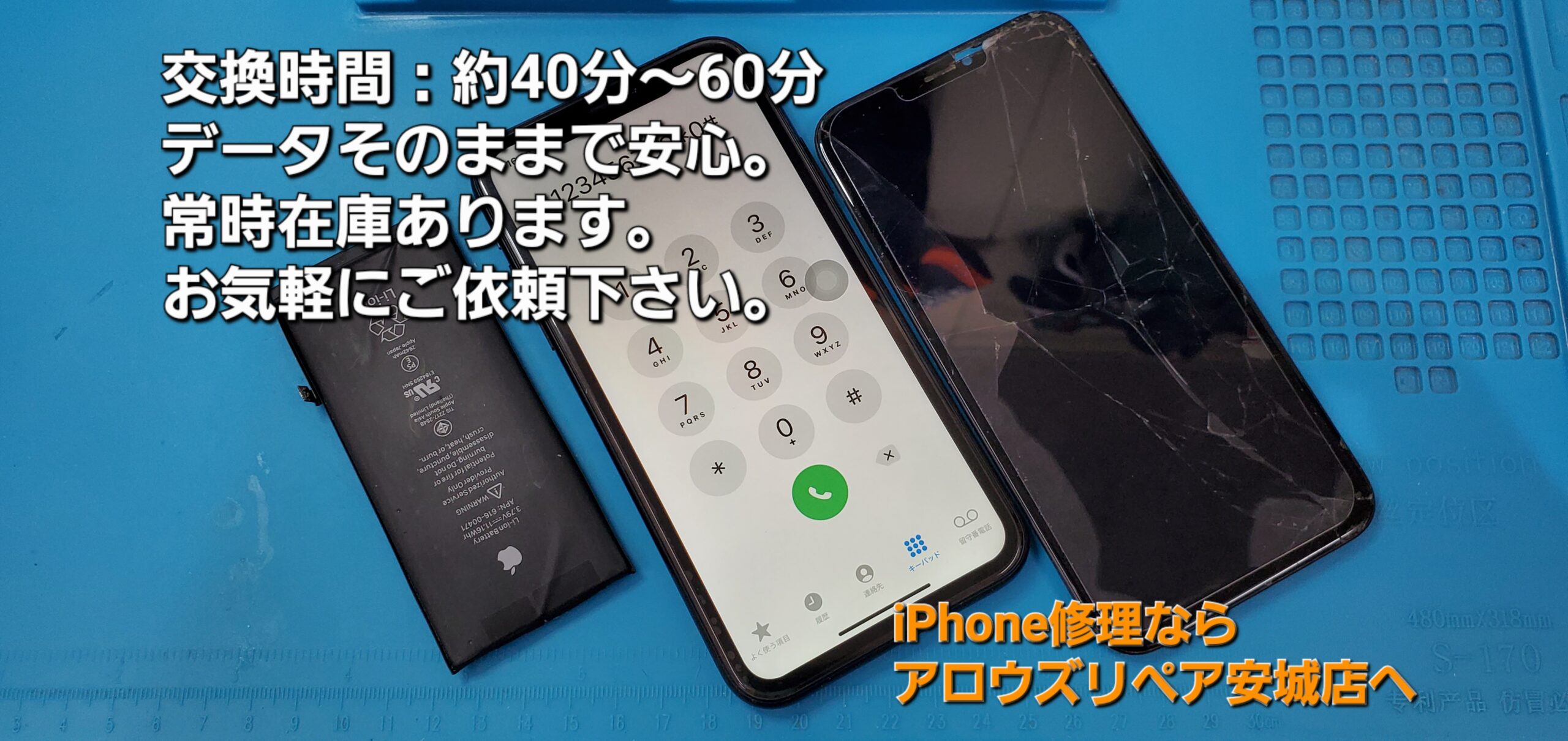 今回は、安城市よりご来店、iPhone XR フロントパネル&バッテリー交換修理のご紹介です。