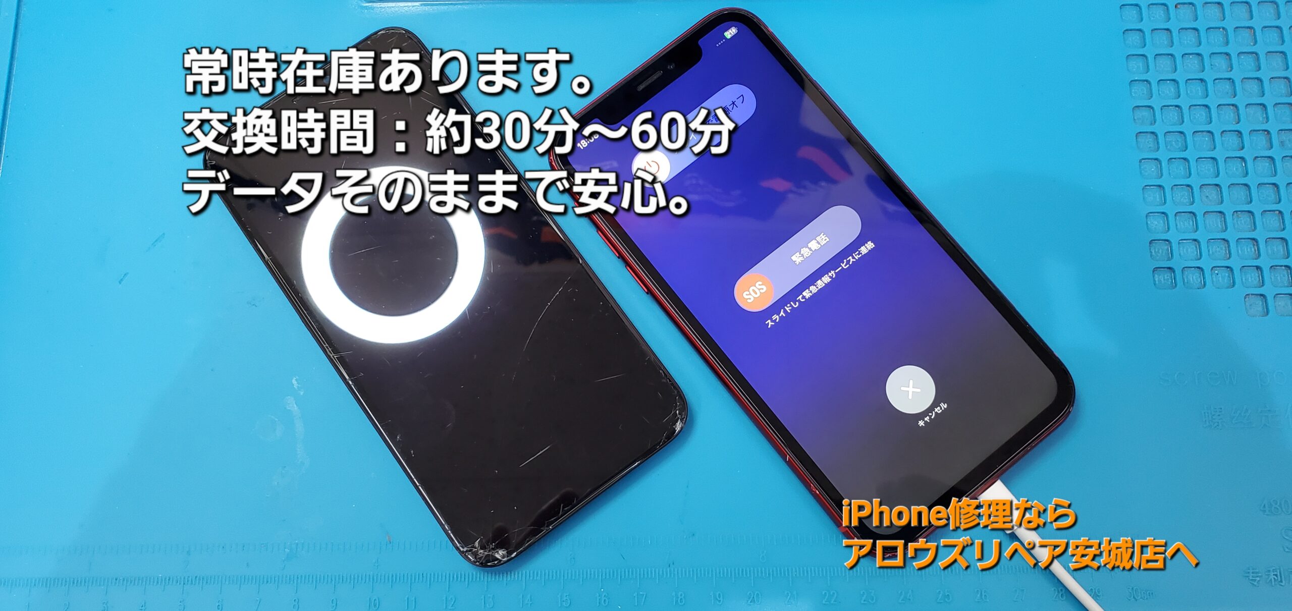 今回は、刈谷市よりご来店、iPhone XR フロントパネル交換修理のご紹介です。