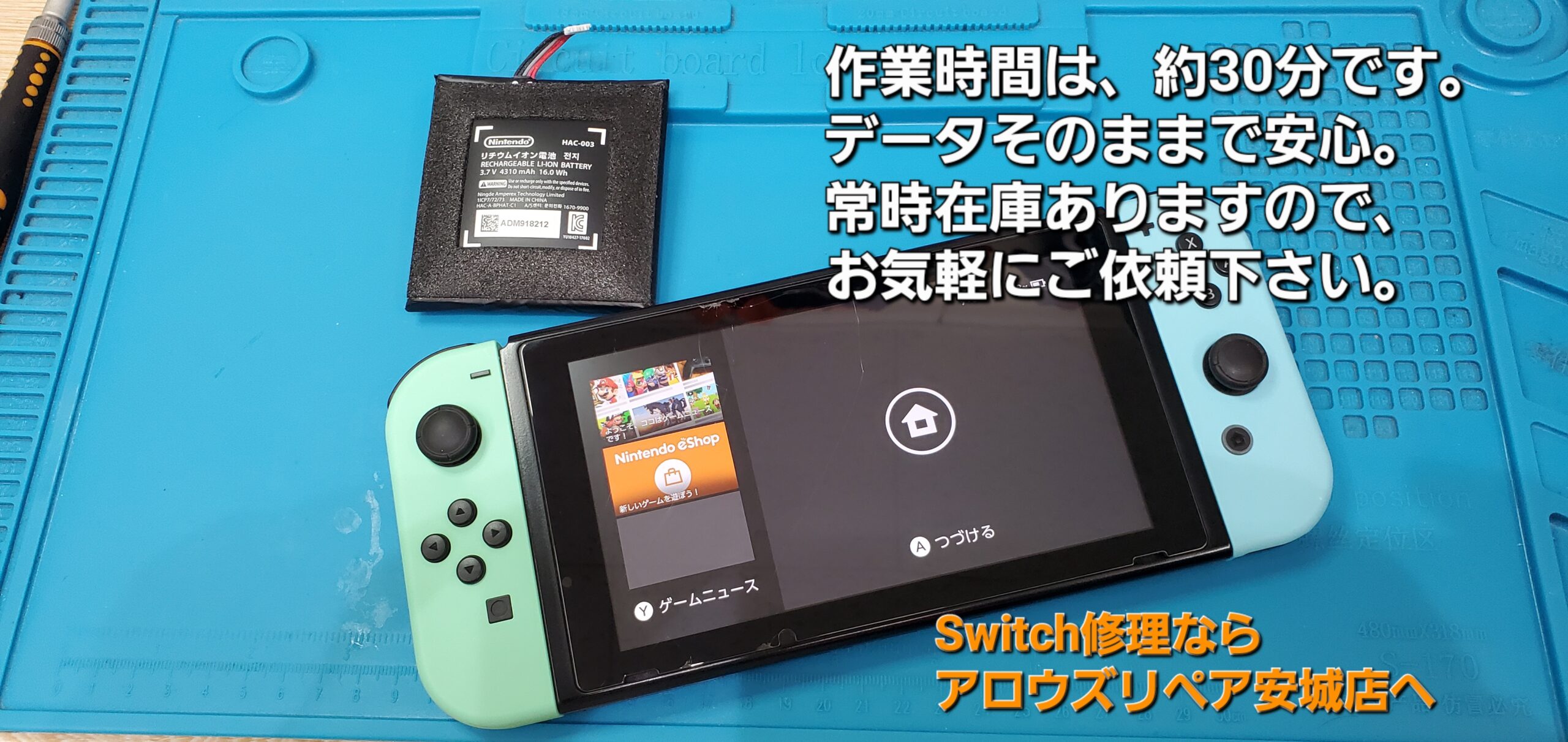 今回は、岡崎市よりご来店、任天堂Switch バッテリー交換修理のご紹介です。