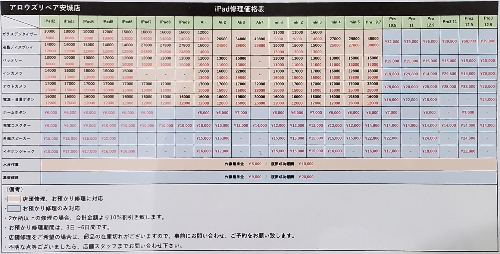 お預かり修理の場合、かなりお得な料金設定となっております❗