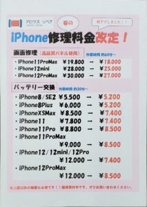 2023年4月1日(土)より、iPhoneの一部機種の画面修理・バッテリー交換の料金を値下げ致しました❗