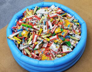 たくさんの駄菓子が欲しい方は、ビニール袋に詰めてね。
