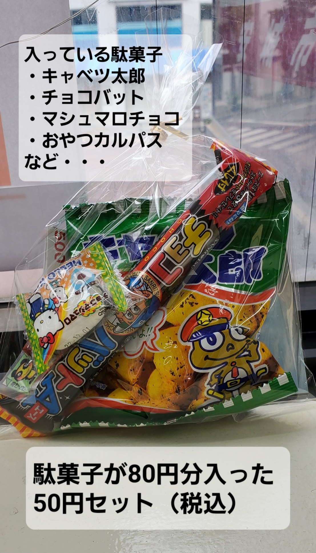※2022年8月20日より駄菓子の販売も開始しました。懐かしい駄菓子に話題の地球グミまで約30種類を取り揃えております。