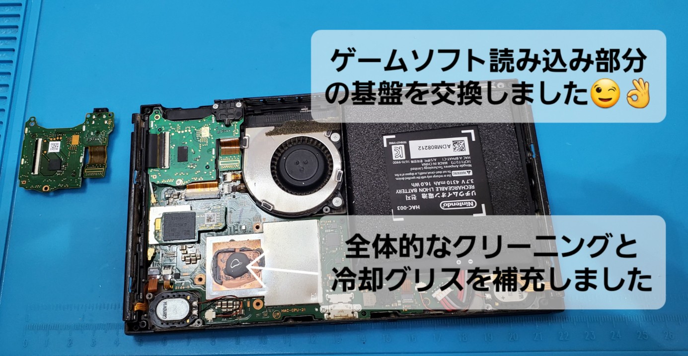 クリーニングで改善するか?試みましたが、改善しなかった為、ゲームカードスロット基盤(サブ基盤)の交換となりました。