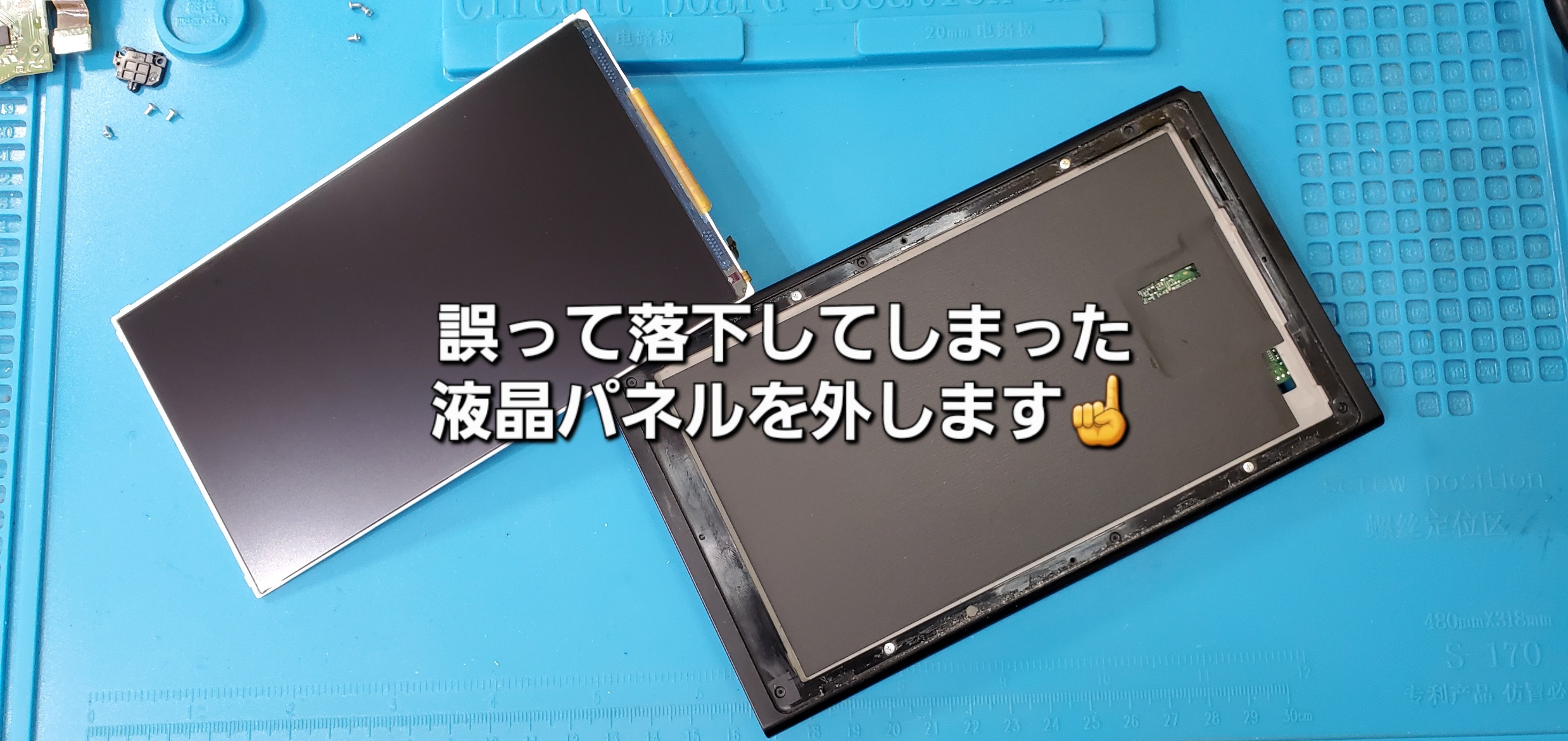誤って落とされてしまい、液晶パネルにヒビが入ってしまったそうです😱