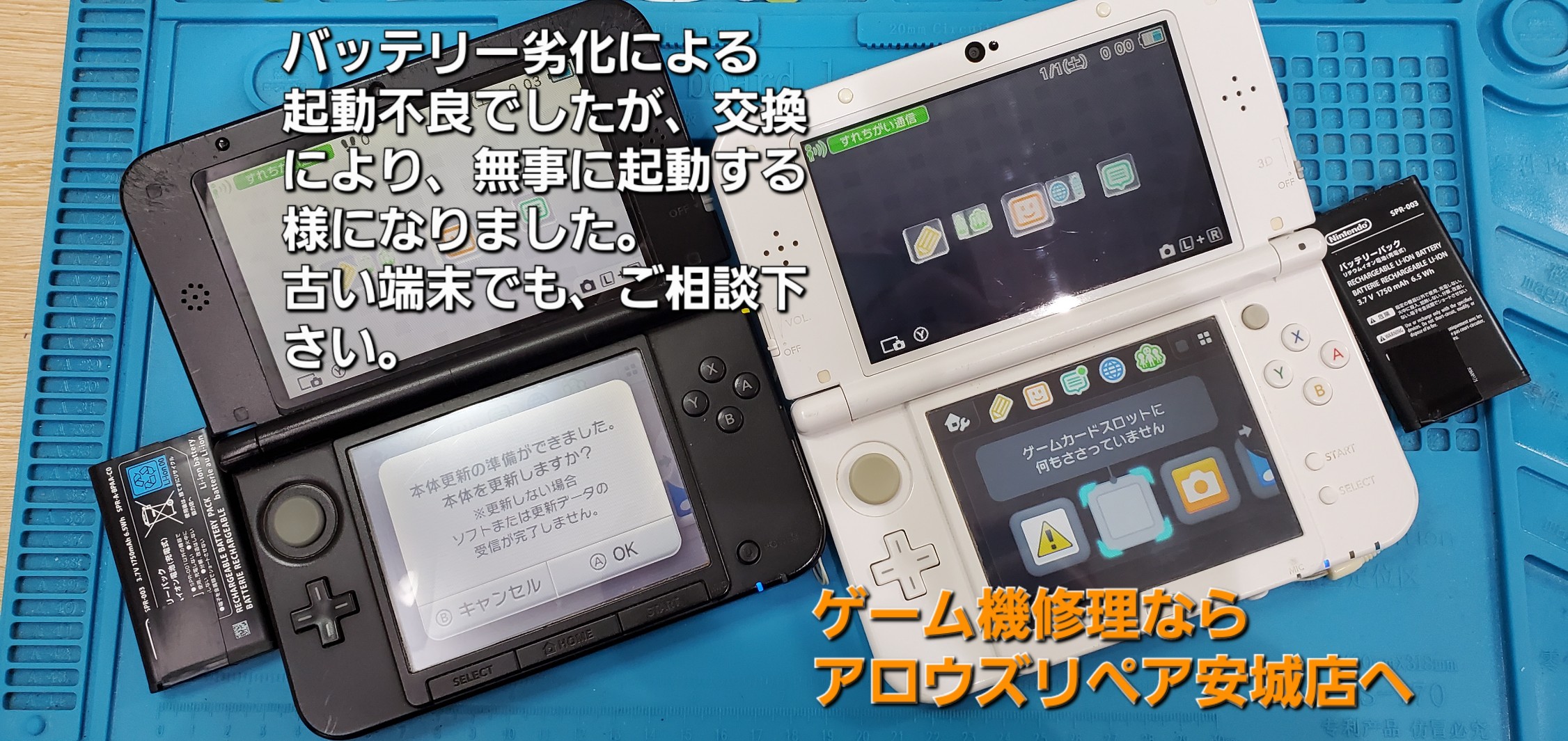 今回は、安城市よりご来店の任天堂 3DSLL/NEW 3DSLL バッテリー交換修理のご紹介です。