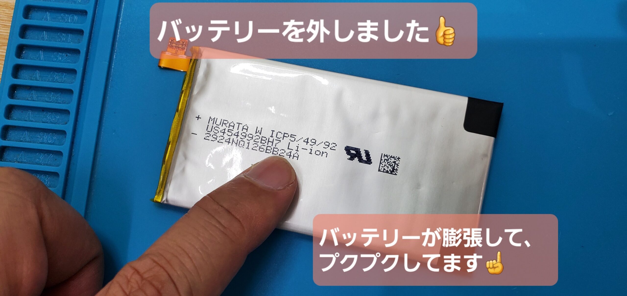 交換作業に取り掛かり、バッテリーを確認したところ、膨張し始めてる状態でした😥