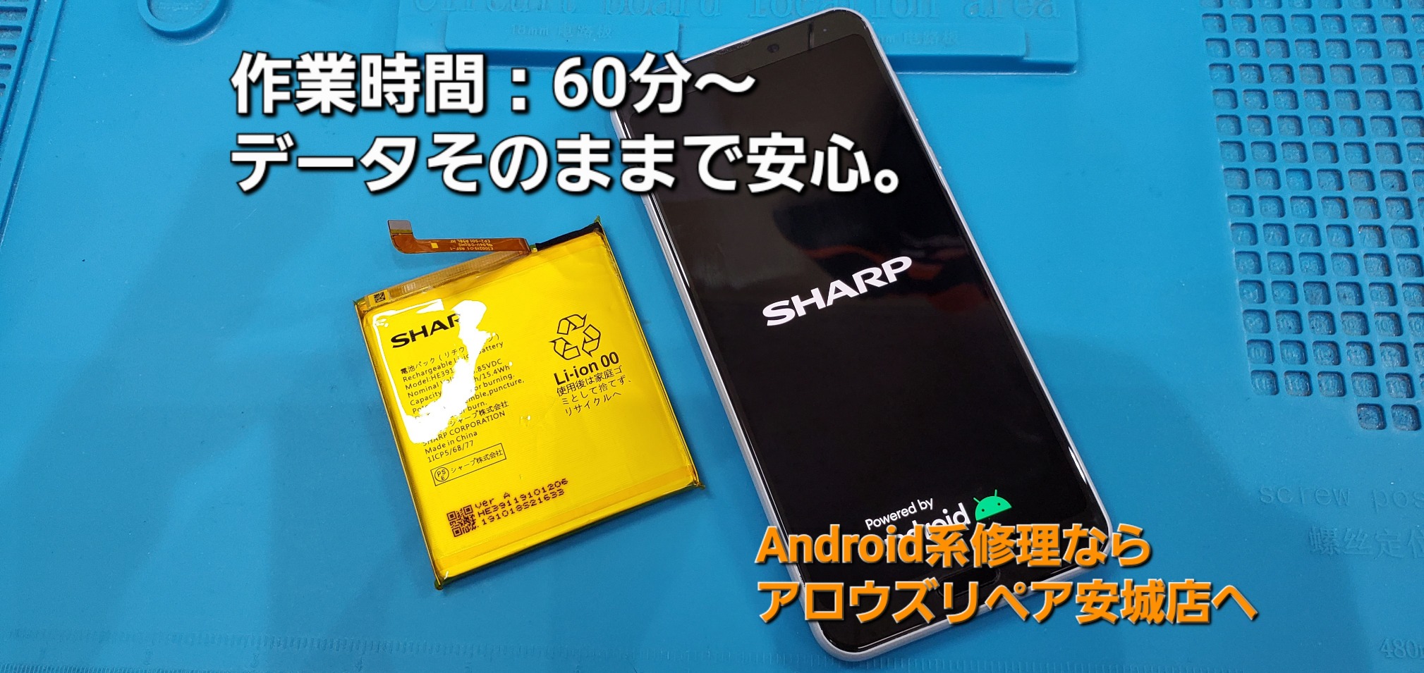 AQUOS sense3 Plus バッテリー交換時間は約60分~で完了致しました。