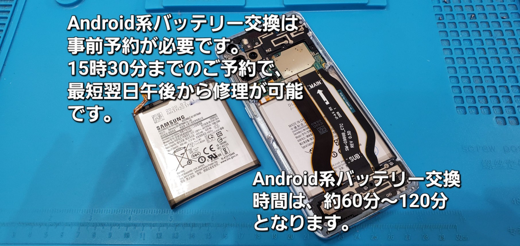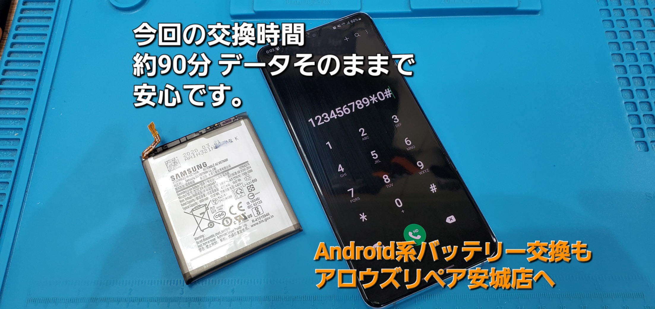 今回のGalaxy S20 Plus バッテリー交換時間は、約60分~120分で完了致しました。