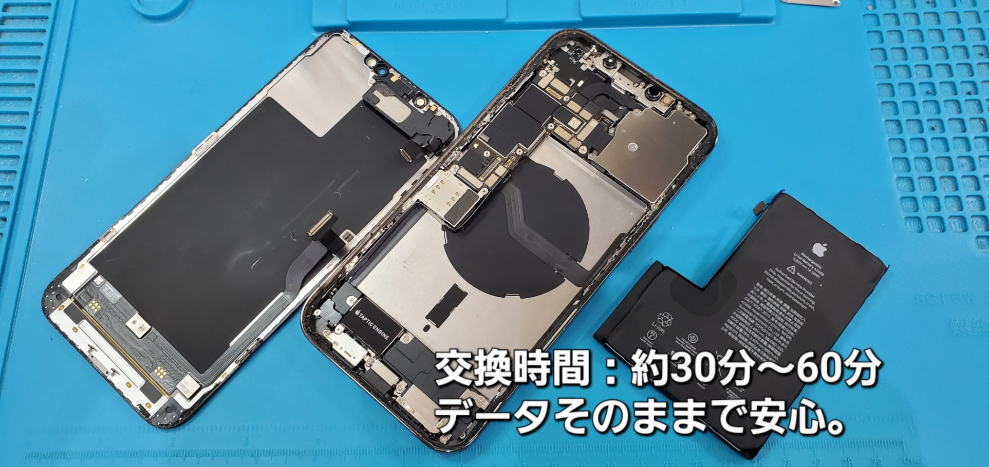 今回のiPhone 12Pro Max バッテリー交換時間は、約30分~60分で完了致しました。