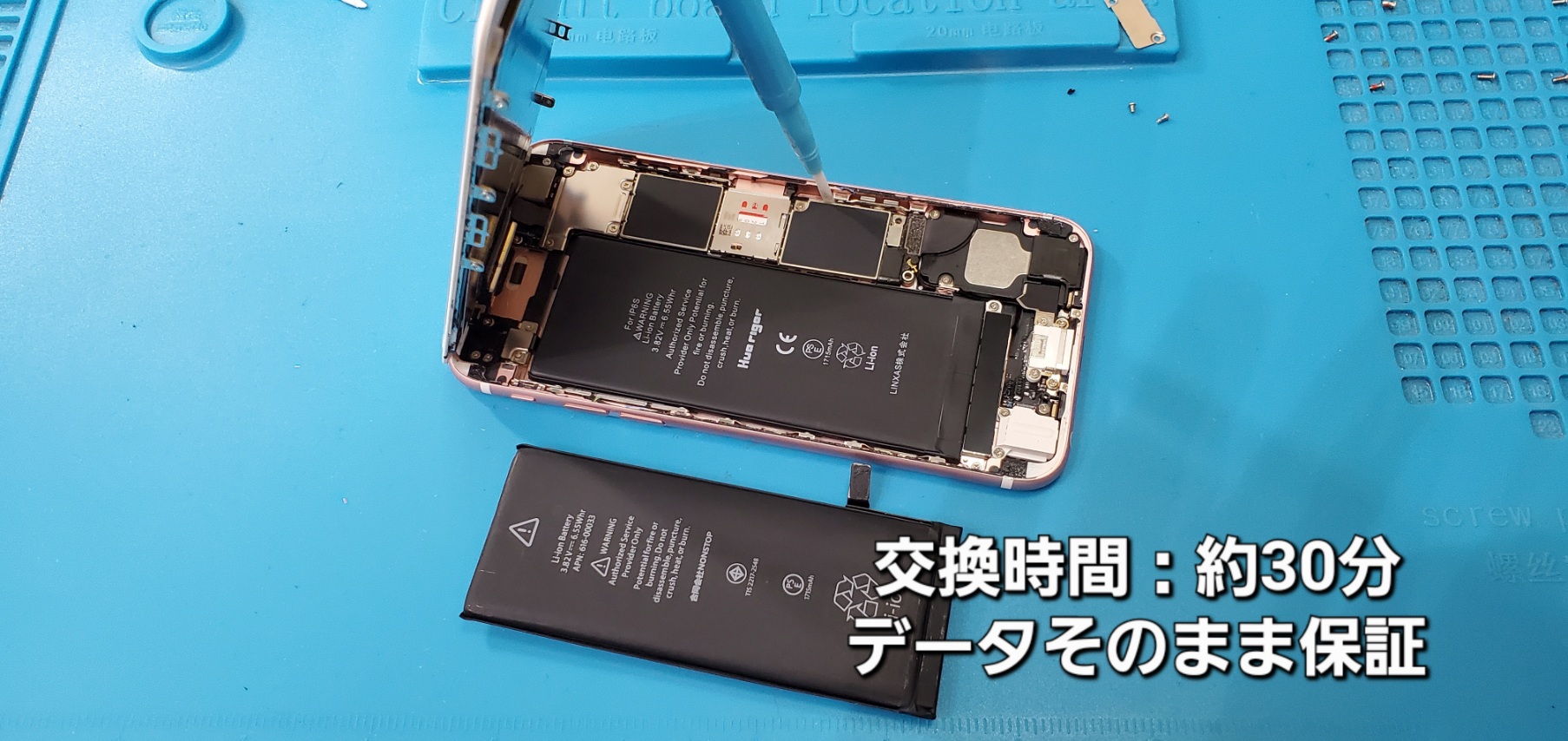 iPhone6sのバッテリー交換なら約30分~で完了致します。
