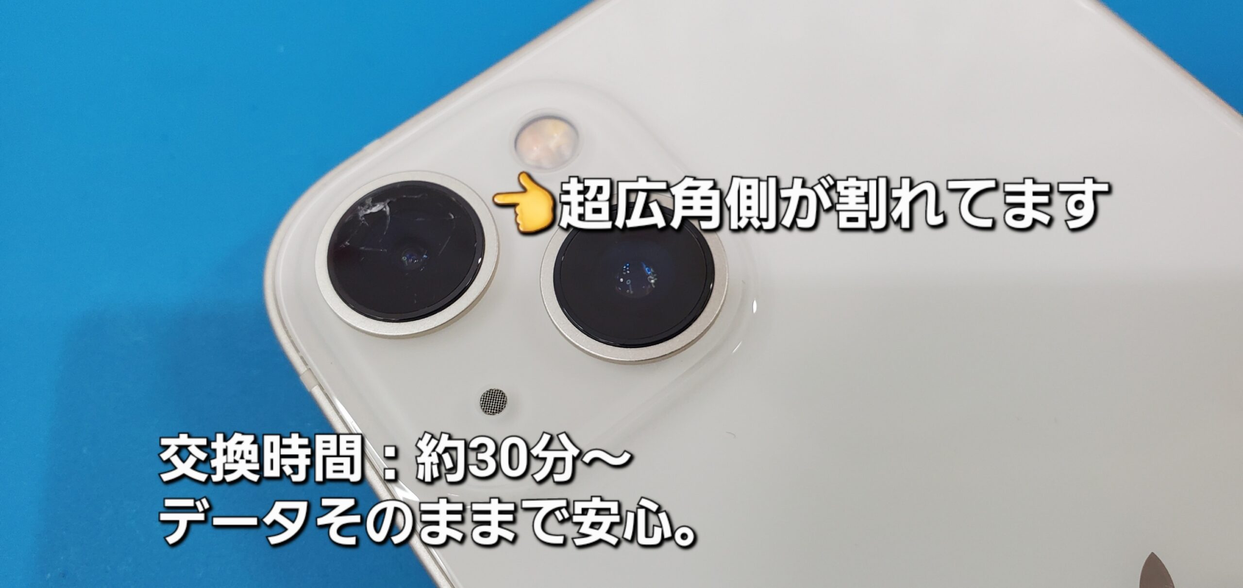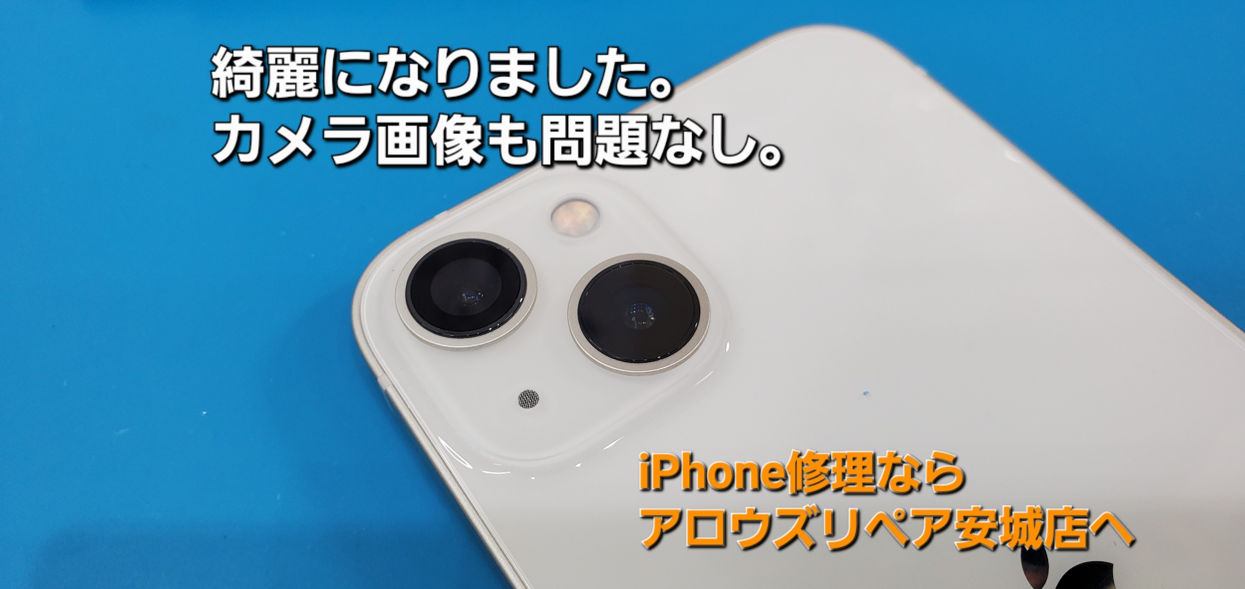 安城市よりご来店、iPhone13 カメラガラス割れ(超広角)交換修理のご紹介。