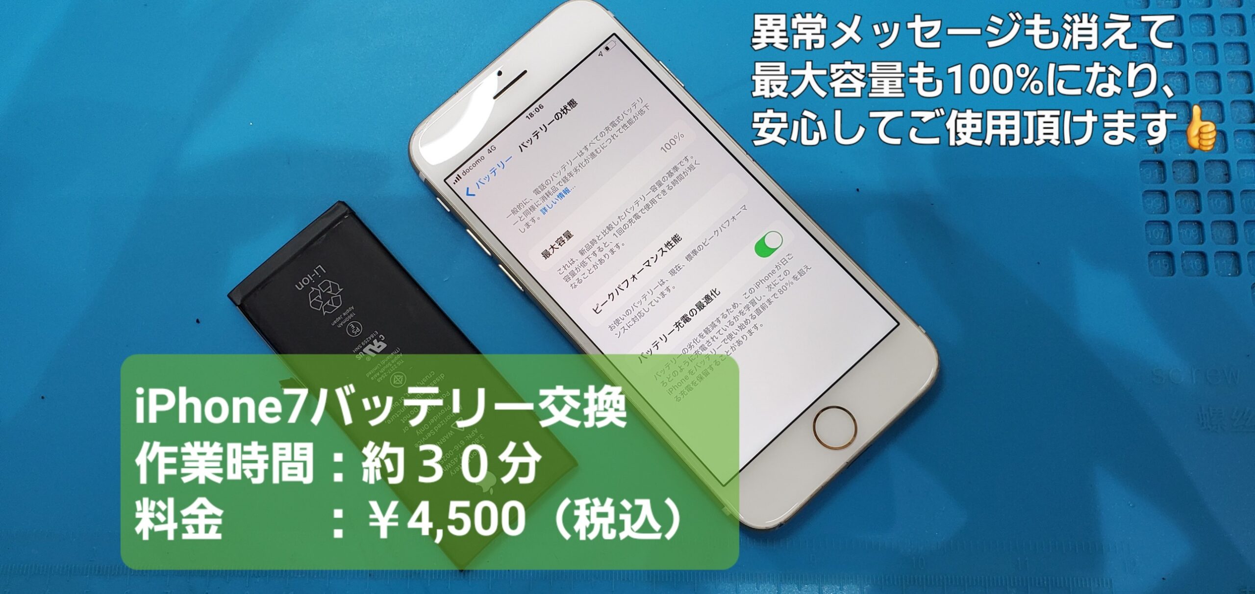 今回は、安城市よりご来店のiPhone7バッテリー交換修理を紹介します。