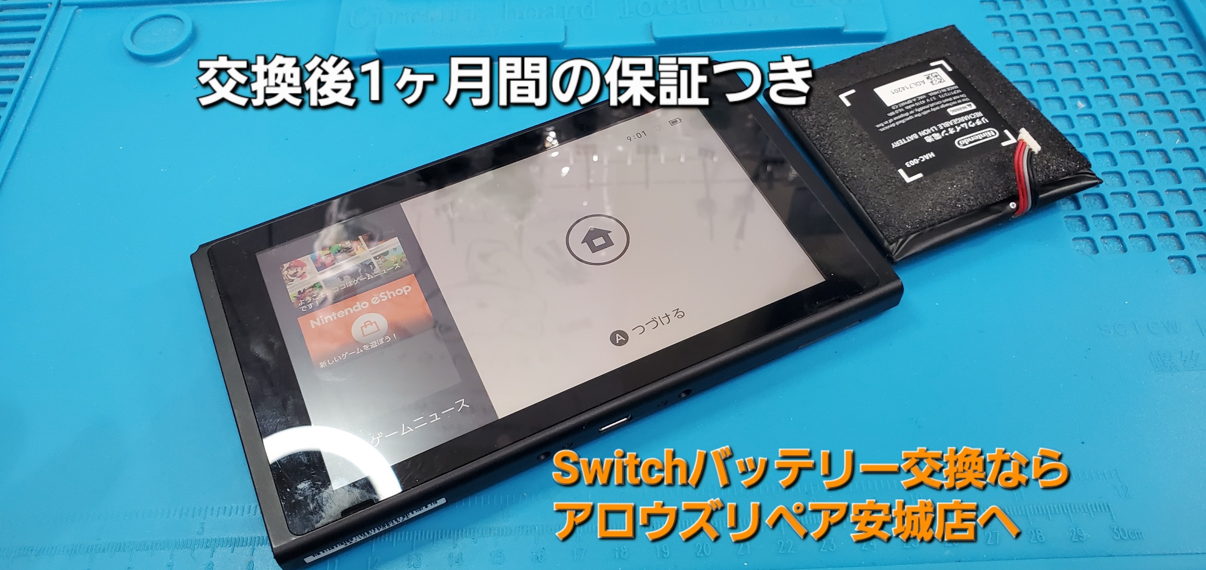 今回は、安城市よりご来店のNintendo Switch バッテリー交換修理のご紹介です。