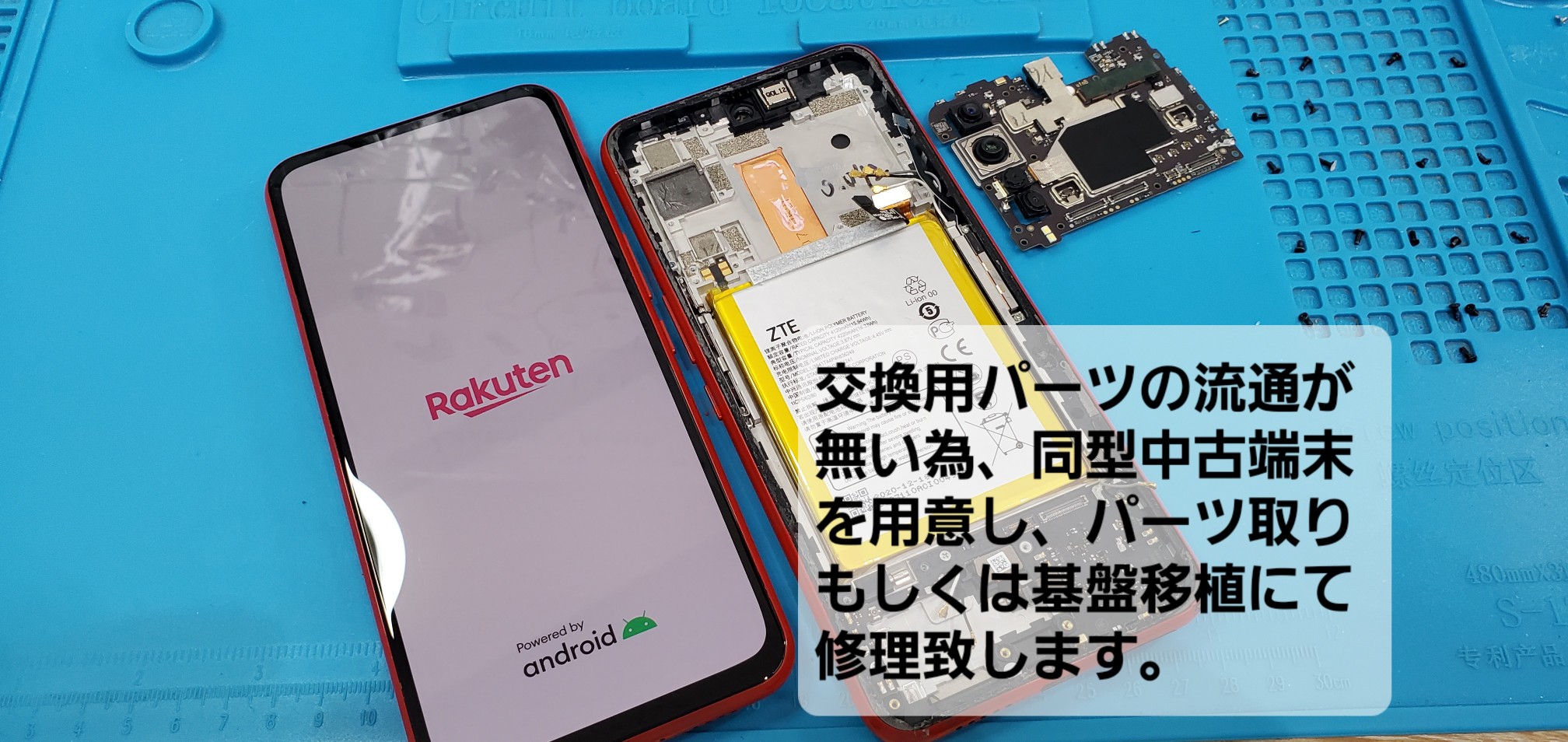 今回のRakuten BIG の様な通信キャリアオリジナル製品は、修理用部品の流通がありませんので、同型同色の中古端末を使用しての修理になります。