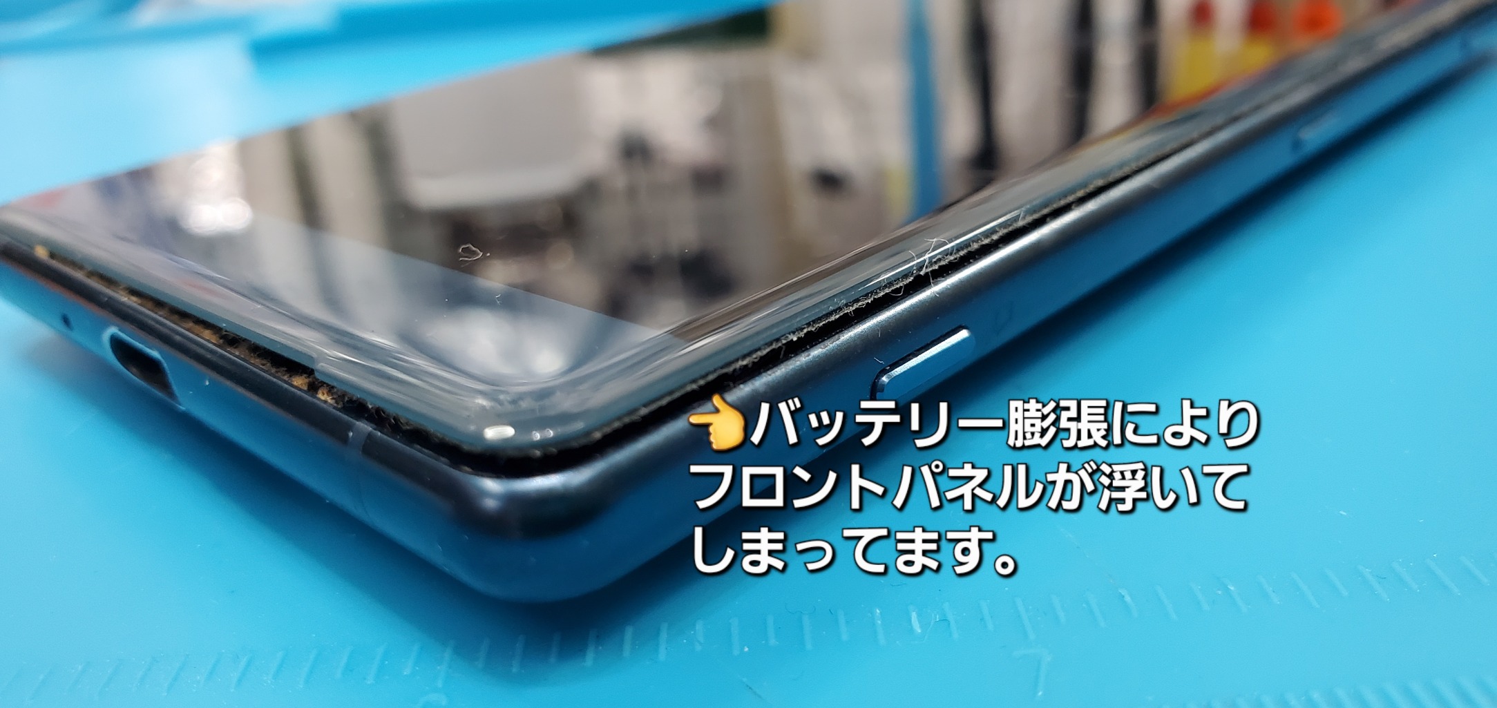 受付時の無料診断でも、バッテリーの残量不足で動作確認は出来ませんでしたが、バッテリーの膨張は確認できましたので、早速交換用バッテリーを手配し、翌日交換修理を実施致しました。