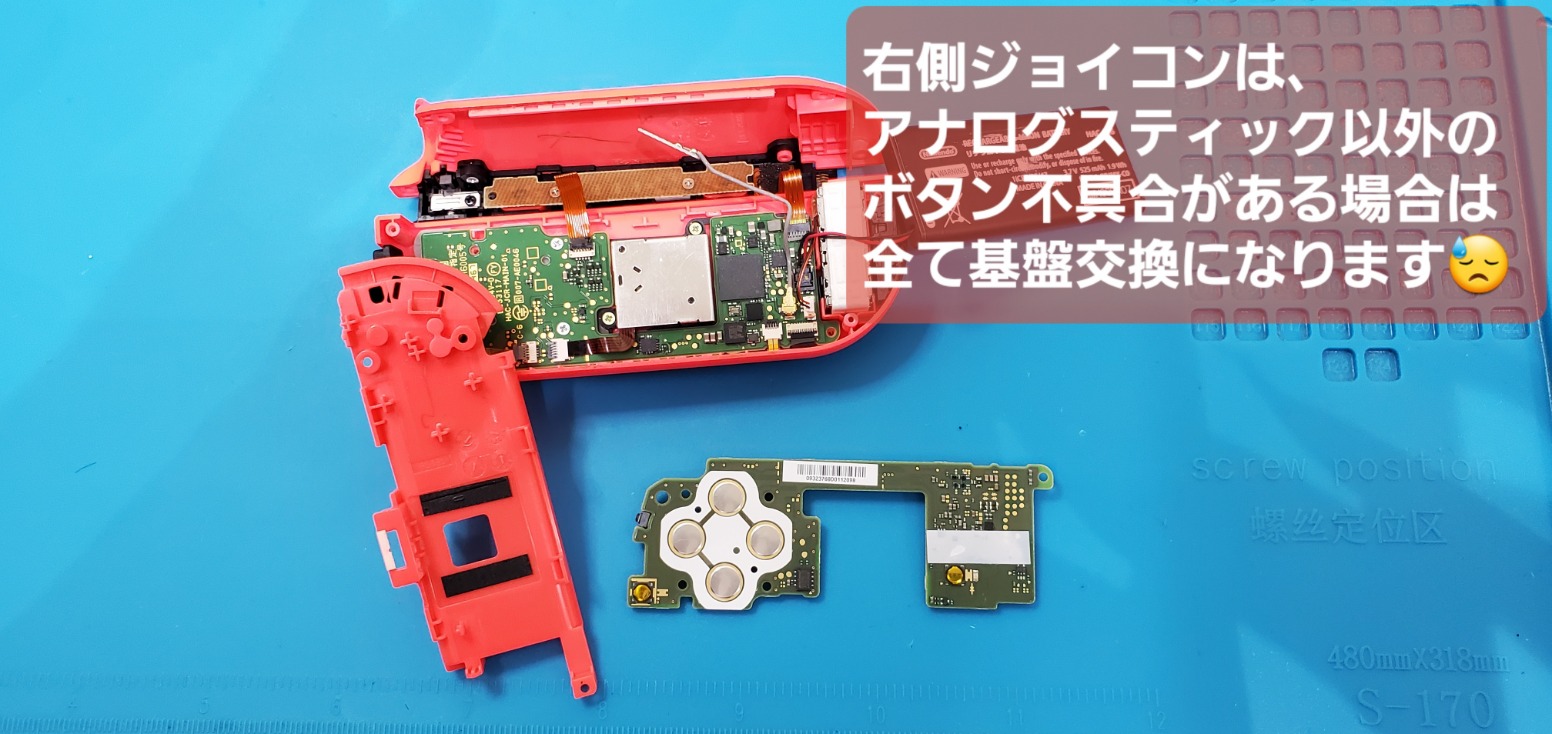 基盤交換は料金的にも新品Joy-conの購入金額と変わらないので、推奨しておりませんが、現在おもちゃ屋さんや家電量販店さんでも「売り切れ」状態の為、今回は修理する事になりました。