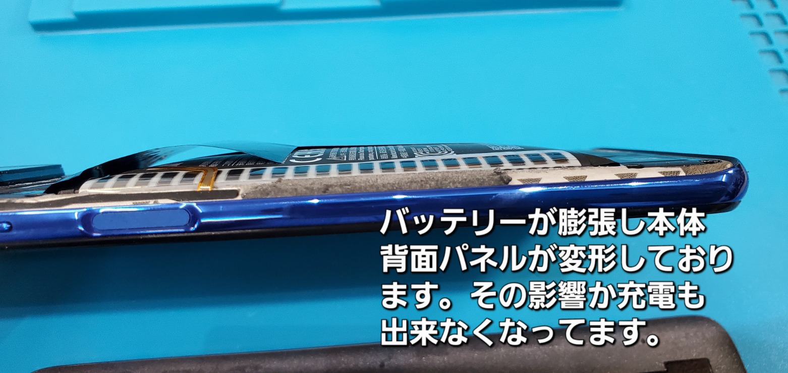 受付時の無料診断でも、充電が出来ておらず、バッテリーも膨張しておりましたので、早速交換部品を手配し後日交換修理を実施致しました。