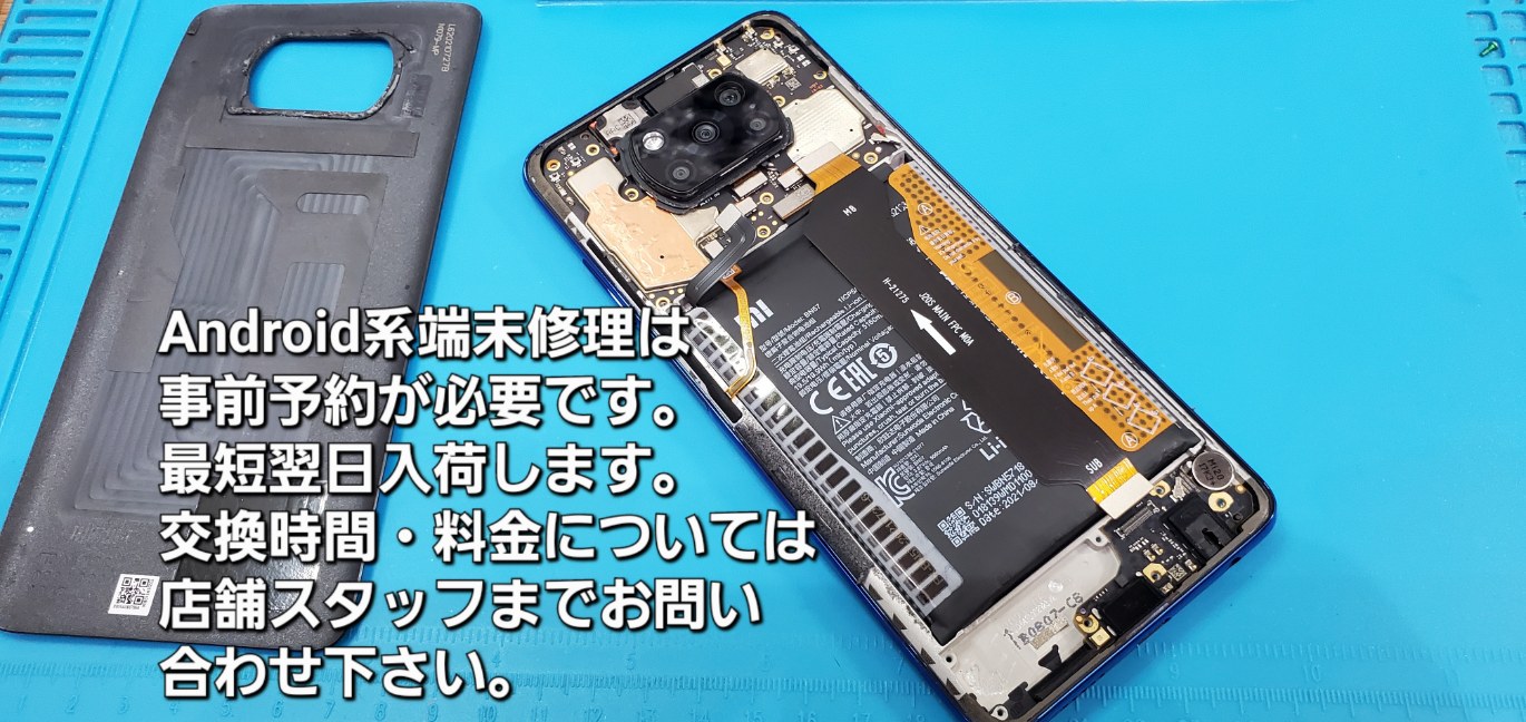 Xiaomi Poco X3 Pro バッテリー・充電コネクター交換時間は、約90分~で完了致します。