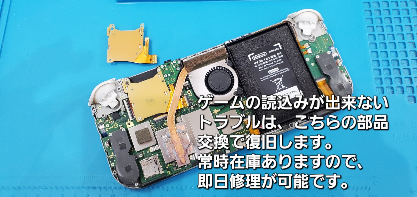 受付時の無料診断でも、ゲームカードを入れると「読み込みエラー」のメッセージが出る状態でしたので、早速交換修理致しました。