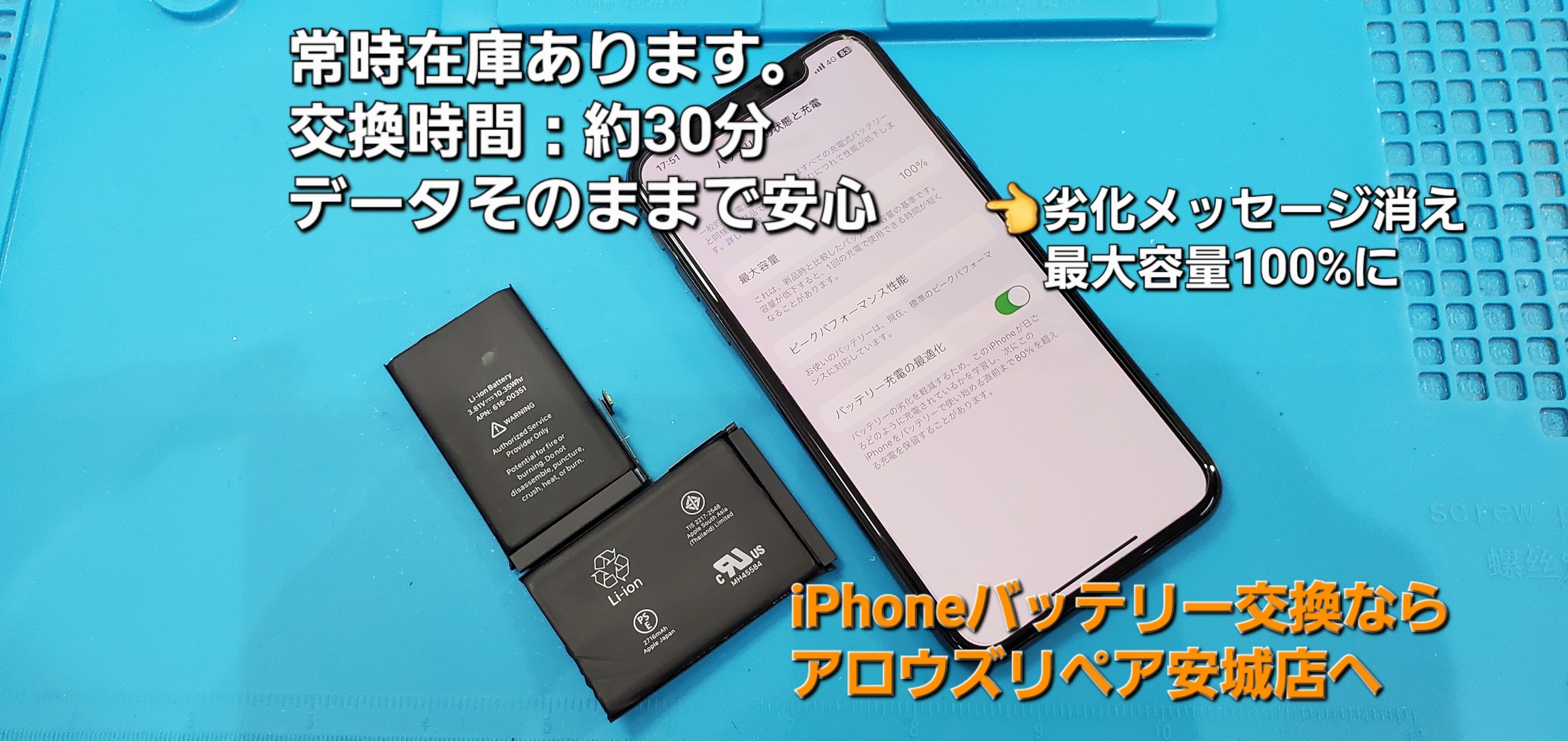 今回は、岡崎市よりご来店の iPhoneX バッテリー交換修理のご紹介です。