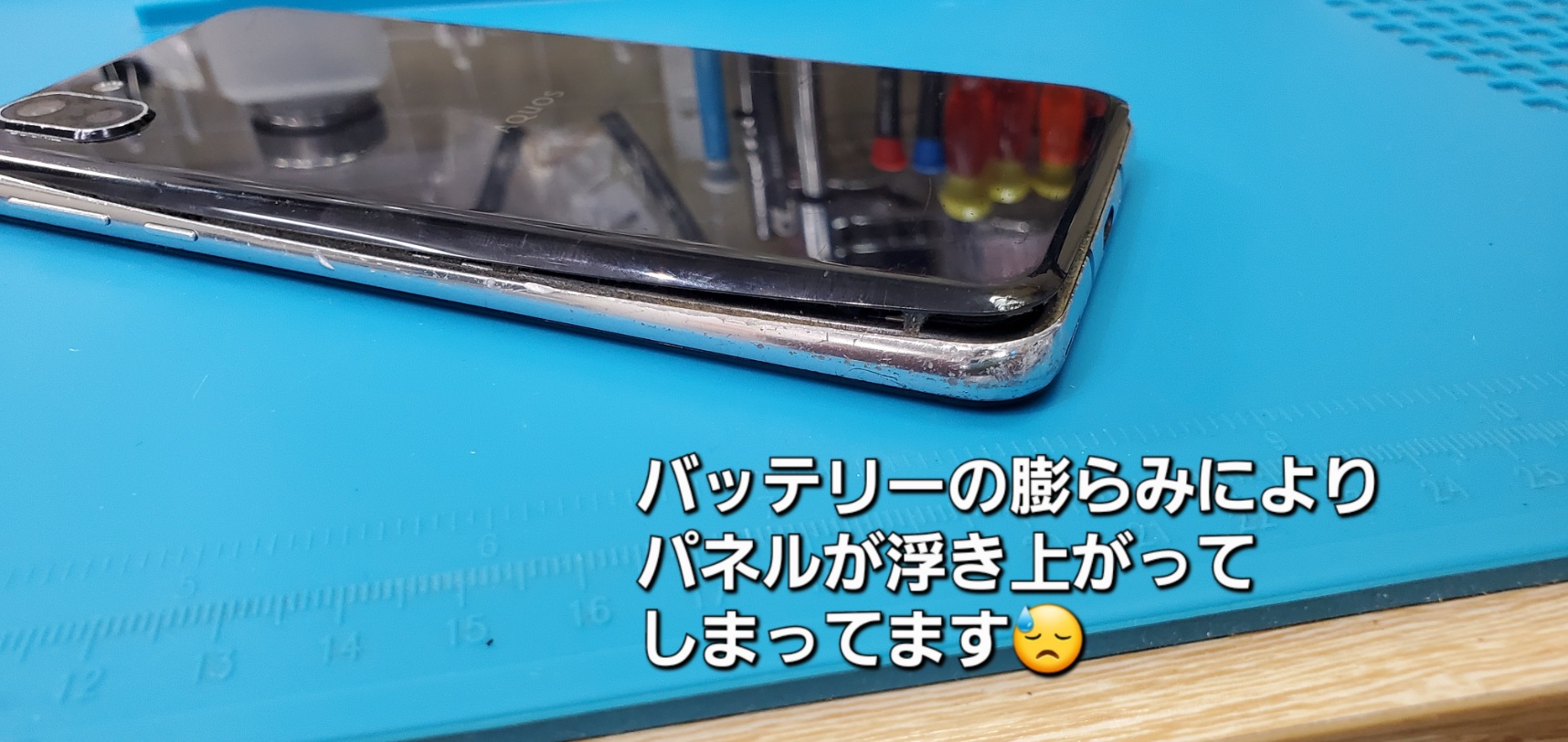 バッテリーが膨らんできて、背面パネルが浮き上がってきたとの事で、当店に修理のご依頼を頂きました。