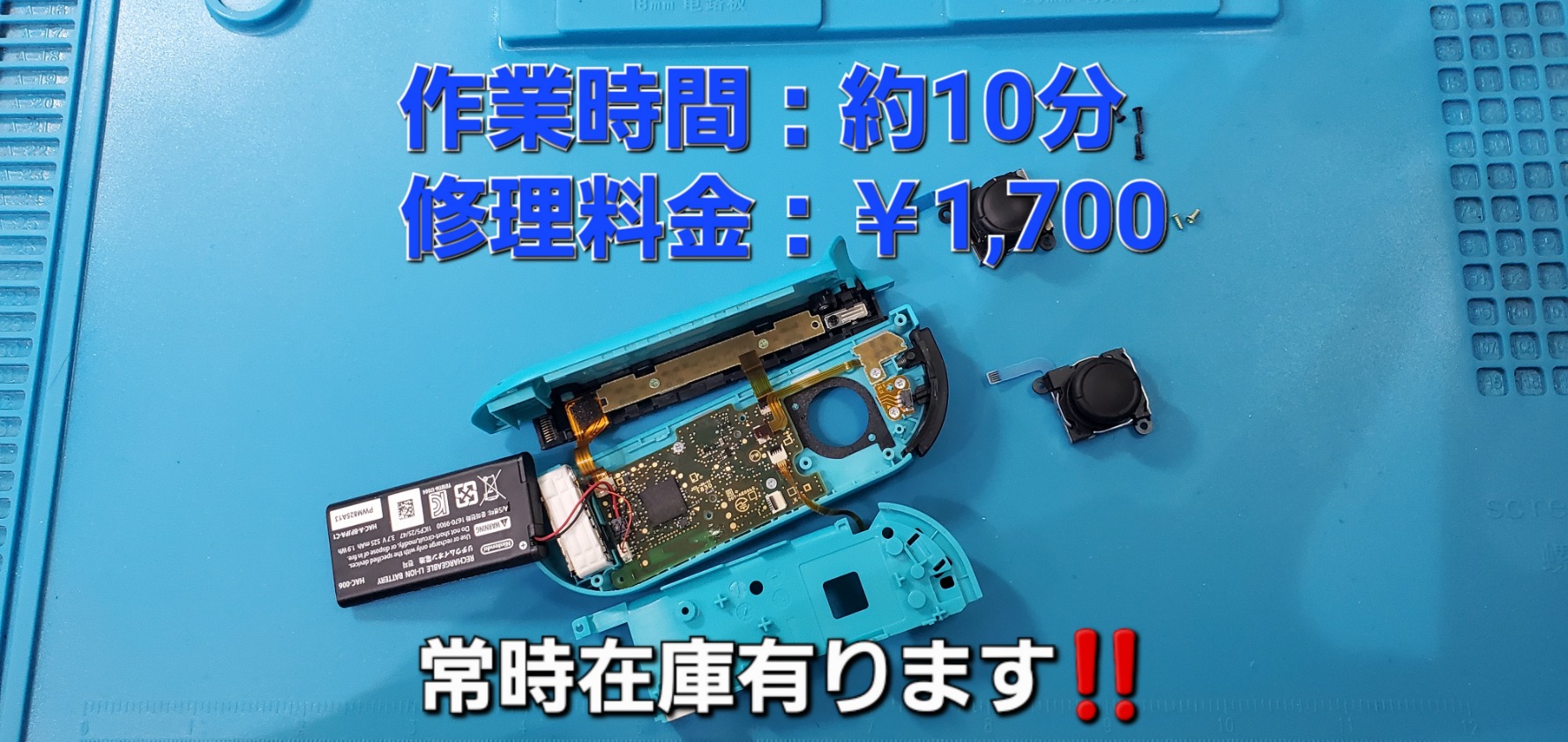 アナログスティック交換作業は、約10分で完了し、料金も地域最安値の¥1,700(税込)となっております❗