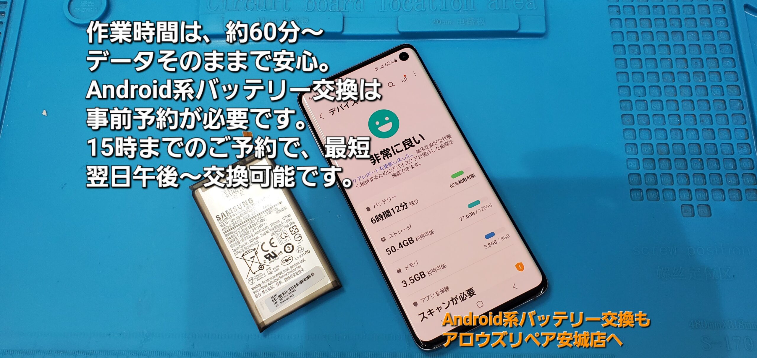 碧南市よりご来店、Galaxy S10 4G バッテリー交換修理のご紹介。