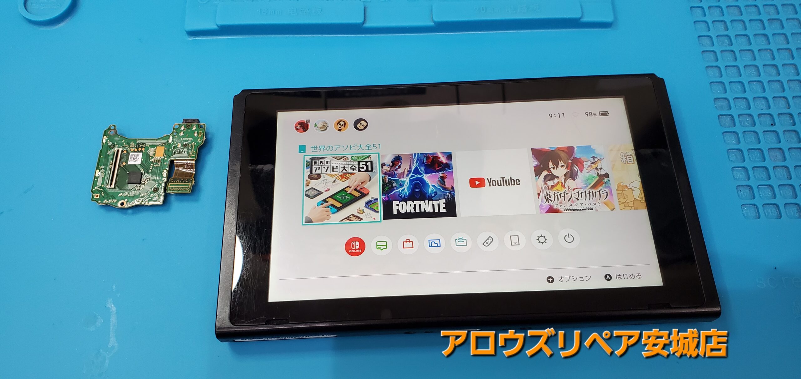今回は、幸田町よりご来店、任天堂Switch ゲームカードスロット基盤交換修理のご紹介です。