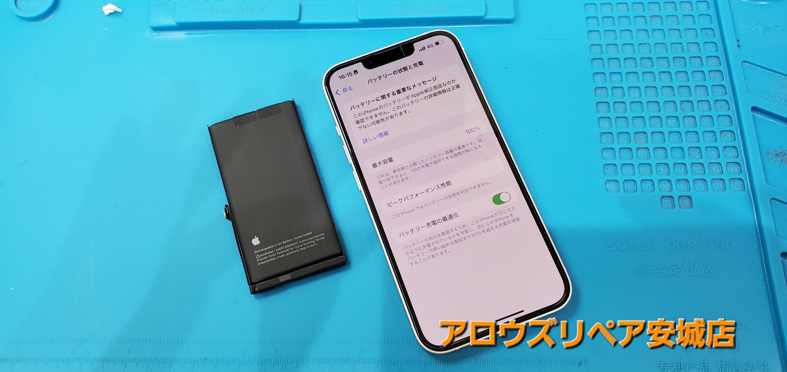 今回は、安城市よりご来店、iPhone 13 バッテリー交換修理のご紹介です。