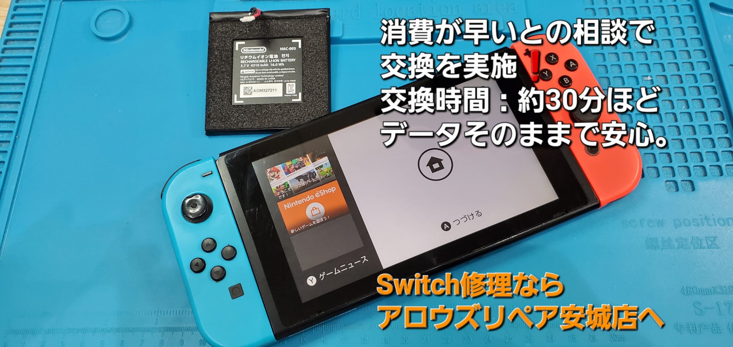 Switch バッテリー交換時間は、約30分ほどで完了致します。