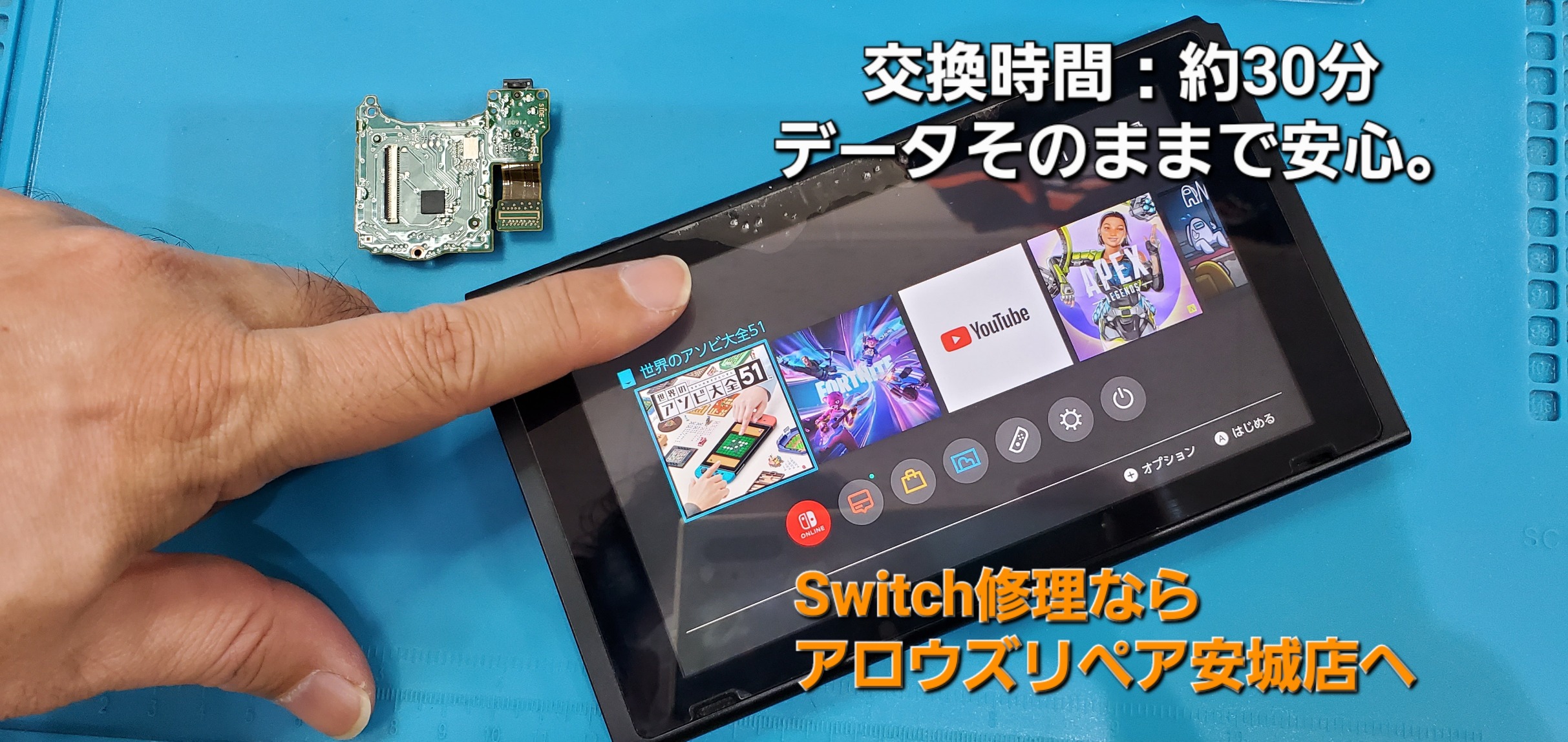 今回は、豊田市よりご来店 任天堂 Switch ゲームカードスロット基盤交換修理のご紹介です。