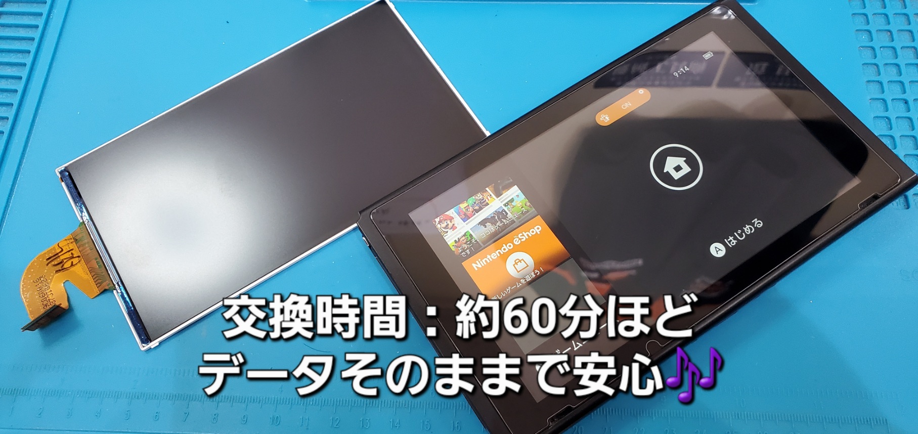 Switch の液晶パネル交換は、約60分ほどで完了致します👍