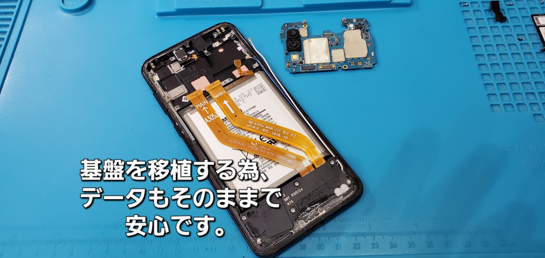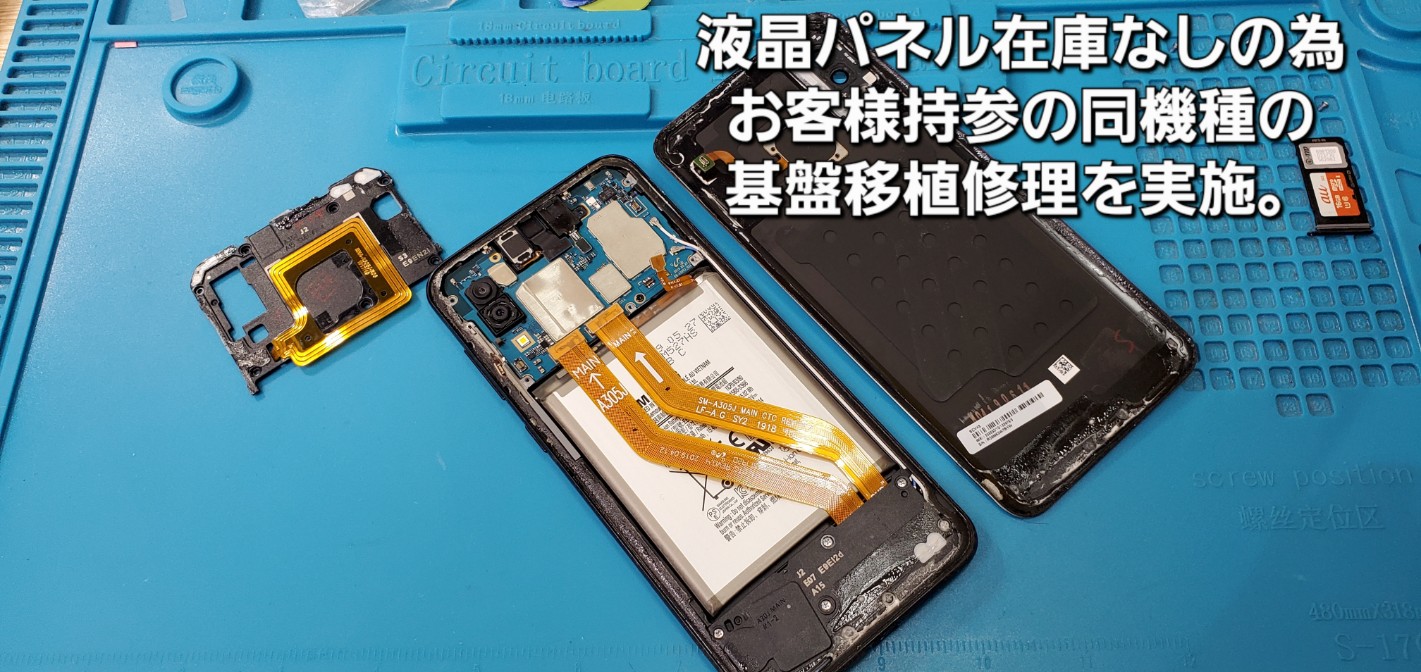 高浜市よりご来店、Galaxy A30 画面割れ基盤移植修理のご紹介。